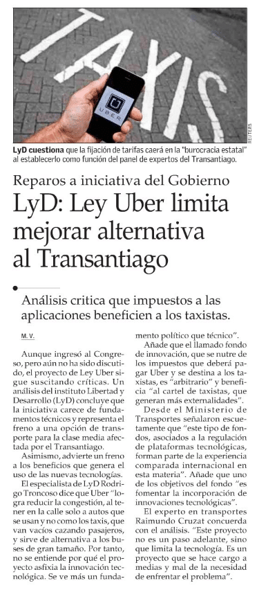 LyD: Ley Uber limita mejorar alternativa al Transantiago