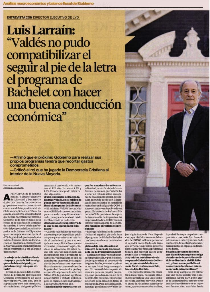 Luis Larraín en Pulso: «Valdés no pudo compatibilizar el seguir al pie de la letra el programa de Bachelet con hacer una buena conducción económica”