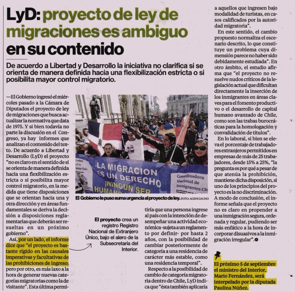 Proyecto de ley de migraciones es ambiguo en su contenido