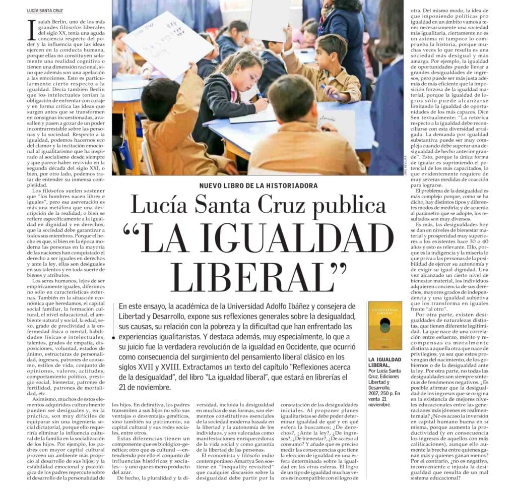 Lucía Santa Cruz publica nuevo libro «La igualdad liberal»