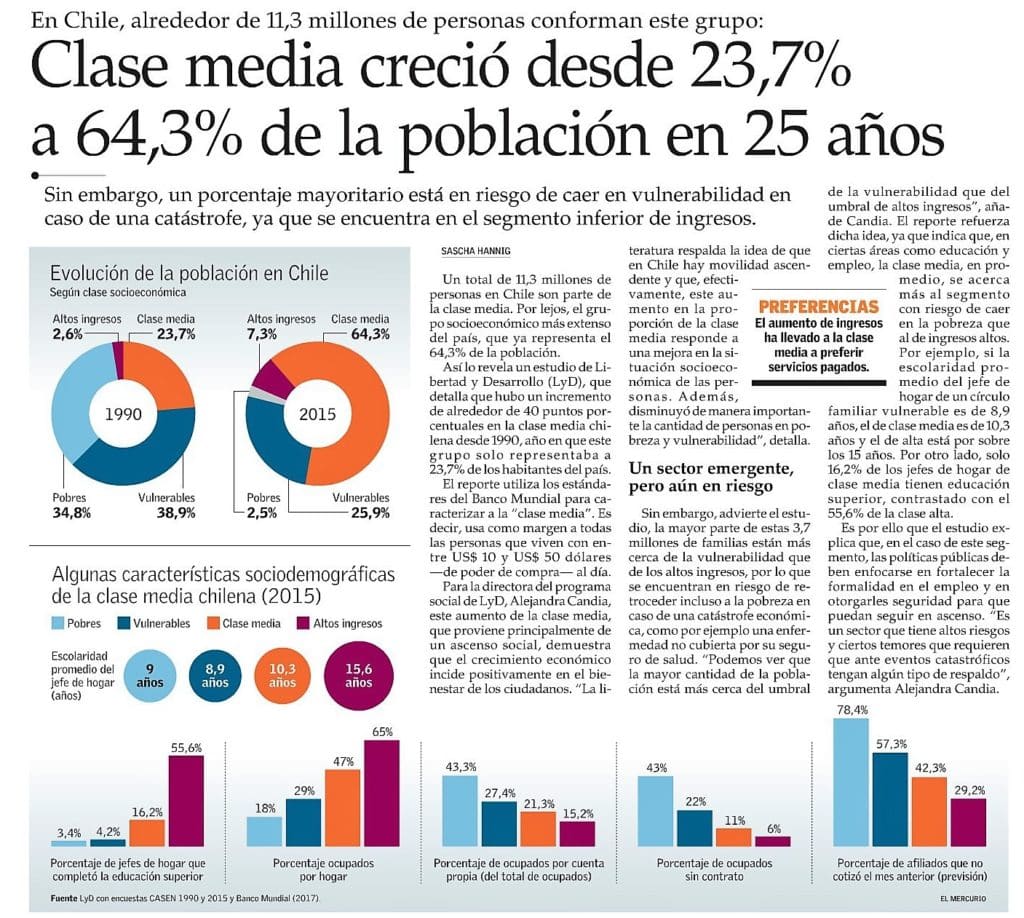 Clase media creció desde 23,7% a 64,3% de la población en 25 años