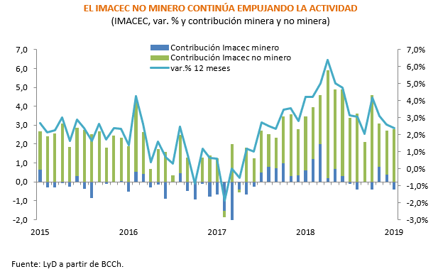 IMACEC: 2,4% a enero 2019, bajo lo anticipado
