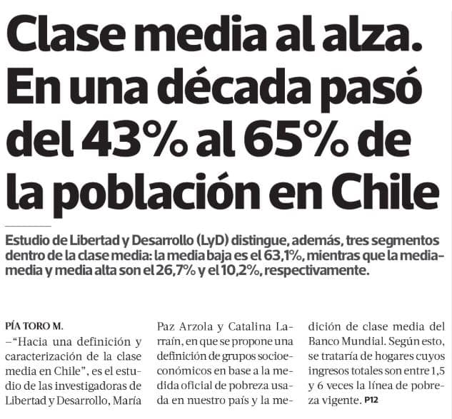 Clase media al alza: En una década pasó del 43% al 65% de la población en Chile