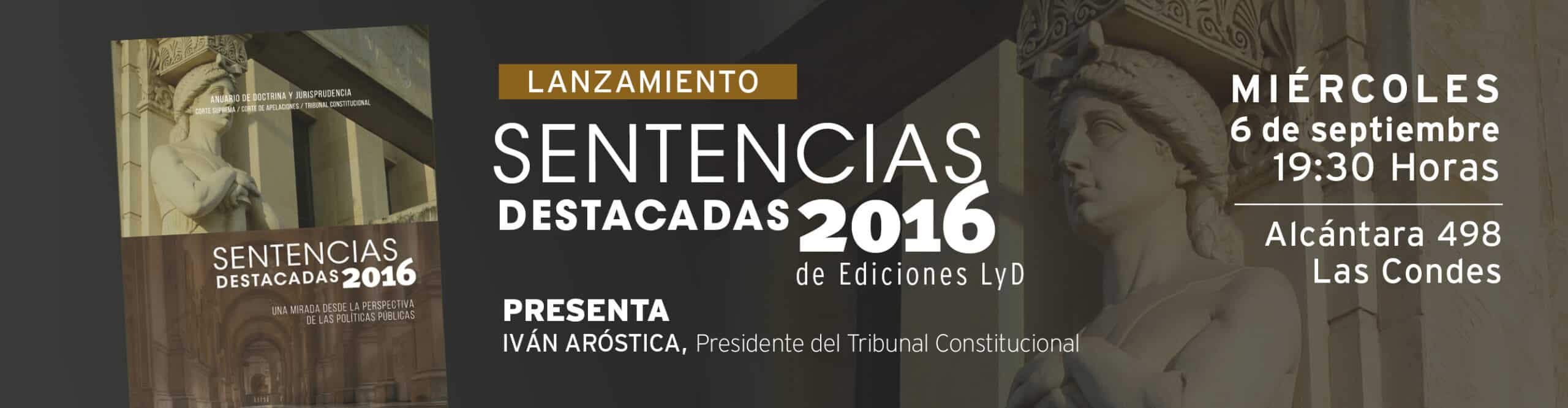 Libertad y Desarrollo lanzará la décimo tercera versión del anuario de doctrina y jurisprudencia, “Sentencias Destacadas 2016, una mirada desde la perspectiva de las políticas públicas”. El libro, cuya edición estuvo a cargo de Arturo Fermandois y Sebastián Soto, ambos Consejeros de Políticas Públicas de Libertad y Desarrollo, será presentado en el Auditorio LyD (Alcántara 498, Las Condes).