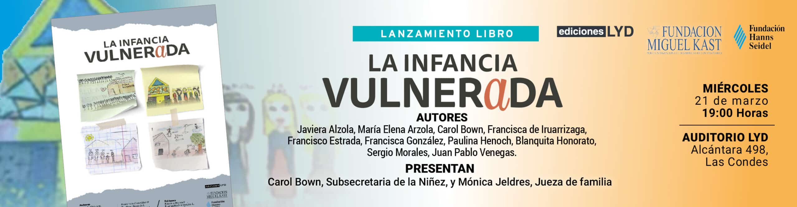 El miércoles 21 de marzo a las 19:00 horas, los invitamos al lanzamiento de este libro que será presentado por la Subsecretaria de la Niñez, Carol Bown, y por la Jueza de Familia, Mónica Jeldres, en el Auditorio LyD (Alcántara 498, Las Condes).