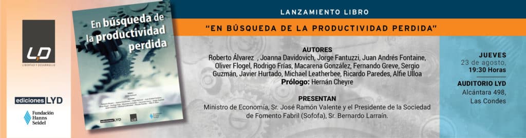 Tenemos el agrado de invitarlos al lanzamiento del libro “En búsqueda de la productividad perdida”, de Ediciones LyD y Fundación Hanns Seidel, que se realizará el día jueves 23 de agosto a las 19:30 horas en el Auditorio LyD (Alcántara 498, Las Condes).