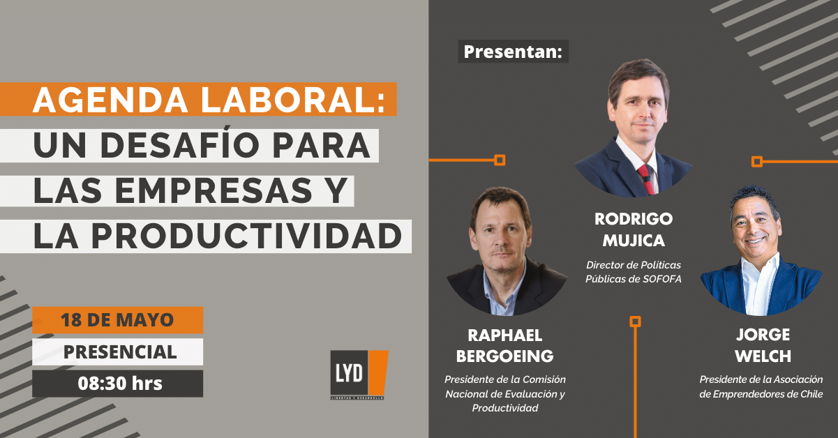 Para tratar estos temas, invitamos al conversatorio "Agenda laboral: un desafío para las empresas y la productividad", en el cual  Raphael Bergoeing, Rodrigo Mujica y Jorge Welch abordarán los efectos que las reformas laborales del Gobierno tienen en las empresas y cómo la productividad es una variable clave para el desarrollo del país.
