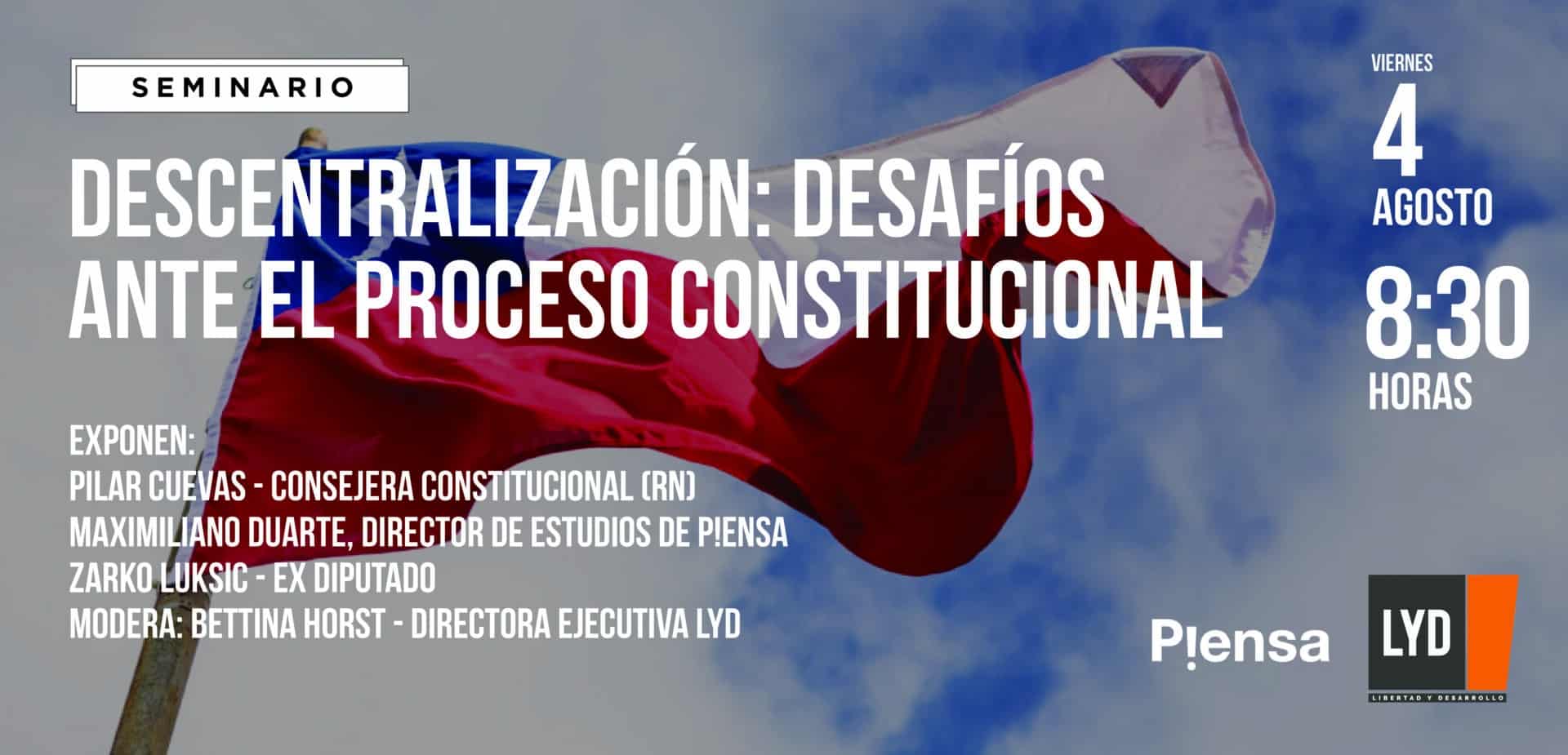 Para conversar sobre cómo está siendo abordado este desafío en el actual proceso constitucional, LyD y Fundación P!ensa te invitan al seminario “Descentralización: desafíos ante el proceso constitucional”, que se realizará el próximo viernes 4 de agosto en el Auditorio de LyD.