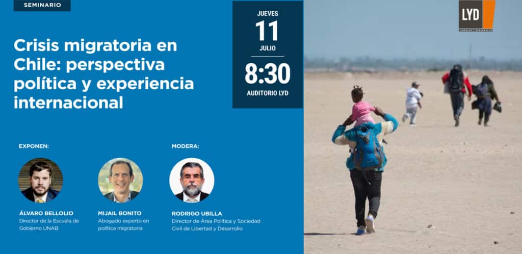En el contexto del creciente fenómeno migratorio en nuestro país, te invitamos al seminario "Crisis migratoria en Chile: perspectiva política y experiencia internacional". En el encuentro, que se realizará el jueves 11 de julio, a las 8:30 horas, se abordarán las complejidades y repercusiones de este fenómeno global desde diversas perspectivas.