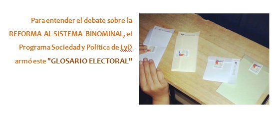 - Sistema Binominal: Es un sistema perteneciente a la familia de los sistemas proporcionales, aunque, es el sistema proporcional de menor cantidad de escaños a repartir por unidad electoral. Bajo este sistema se eligen 2 representantes por distrito para el caso de la Cámara de Diputados o circunscripción para el caso del Senado. Con este sistema se eligen los representantes de las dos listas más votadas, a menos que una de las listas logre doblar en votación a la segunda más votada.