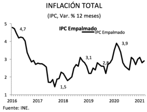 El Instituto Nacional de Estadísticas (INE) dio a conocer el Índice de Precios al Consumidor (IPC) para el mes de marzo 2021, el cual registró una variación mensual de 0,4%, en línea con las expectativas del mercado. En términos anuales, la inflación total alcanzó una variación de 2,9% respecto de la base referencial del índice.