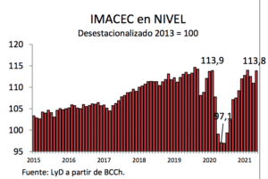El Banco Central de Chile dio a conocer el IMACEC de mayo 2021, el cual registró una expansión de 18,1% en