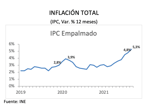 septiembre 2021, el cual registró una variación mensual de 1,2%, muy por sobre las expectativas del mercado. En términos anuales, la inflación total alcanzó una variación de 5,3% respecto de la base referencial del índice.