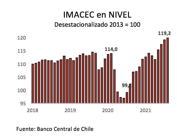 El Banco Central de Chile dio a conocer el IMACEC de agosto 2021 que registró una expansión de 19,1% en