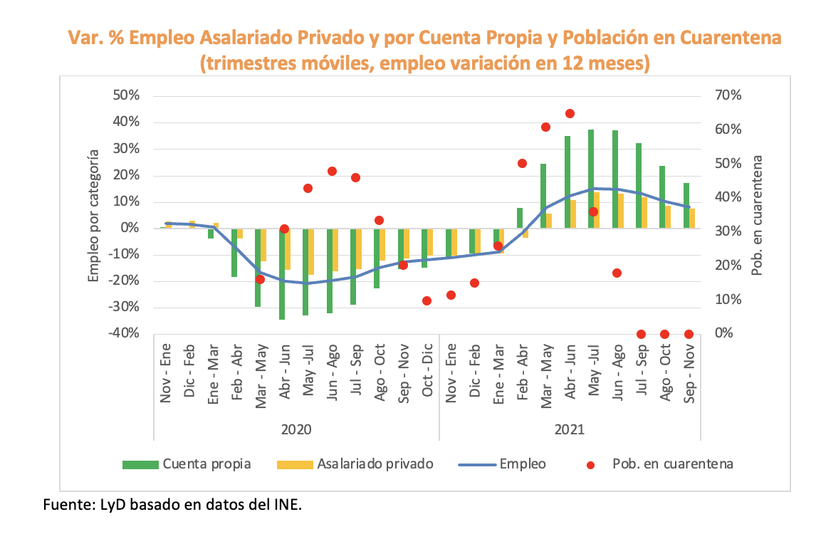 La disminución de la tasa de desempleo se explica principalmente por el relajamiento de las medidas sanitarias producto de la pandemia, en el sentido que en el trimestre septiembre-noviembre no hubo cuarentena en todo el país.