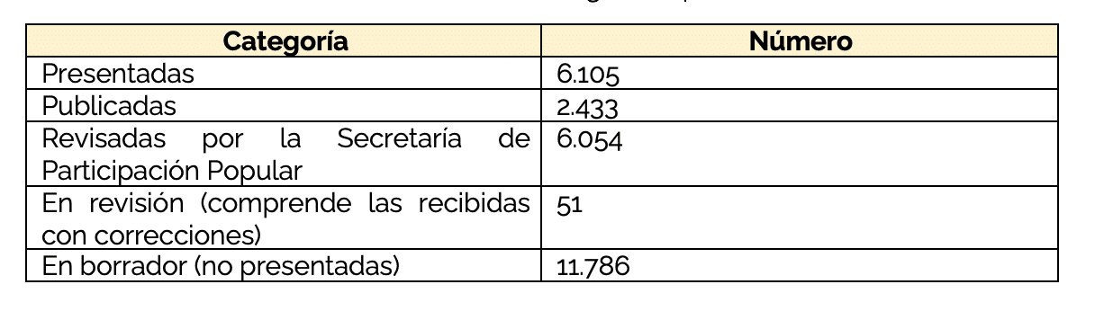 Por otro lado, el estado de las 6.054 iniciativas revisadas es el siguiente:
