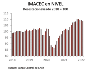 En el IMACEC del primer mes del año destacó principalmente la contribución de servicios (6,6%), con una variación anual de 14,6%. De esta manera, luego de observar un incremento de 9% en enero, ahora de 6,8% en febrero y con una proyección en torno a 3% para marzo, se puede apreciar la desaceleración que ya el Banco Central anticipó en su IPoM de marzo, donde preveé que el crecimiento del año 2022 será de solo 1,5%.