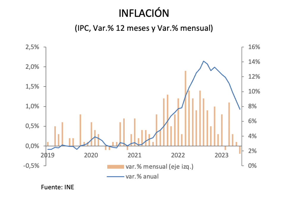 El Instituto Nacional de Estadísticas (INE) dio a conocer el Índice de Precios al Consumidor (IPC) para el mes de junio de 2023, el cual registró una variación mensual de -0,2%, sorprendiendo positivamente al mercado y acumulando 2,1% en lo que va del año. En doce meses, en tanto, el alza de los precios continúa moderándose y en el sexto mes del año fue de 7,6%. Con este resultado, la Unidad de Fomento (UF) caerá en $72 en los próximos 30 días.
