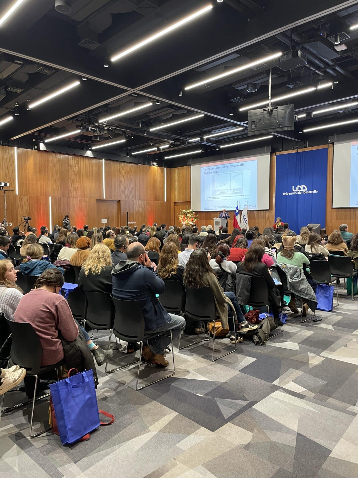 El seminario comenzó con las palabras de nuestra Directora Ejecutiva, Bettina Horst, quien dio la bienvenida poniendo el foco en los desafíos y consecuencias que ha sufrido el sistema escolar después de la pandemia. Luego, el rector de la Universidad del Desarrollo, Federico Valdés, comentó los problemas en educación.