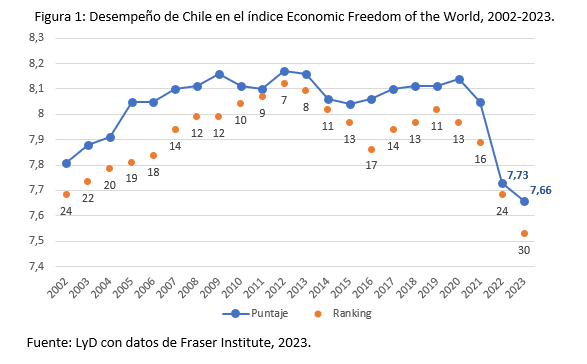 Chile se situó en el lugar Nº30 entre 165 países en el actual reporte, dado a conocer por el Fraser Institute de Canadá en asociación con Libertad y Desarrollo para Chile. Esta posición implica que el país retrocedió seis puestos con respecto al informe de 2022.