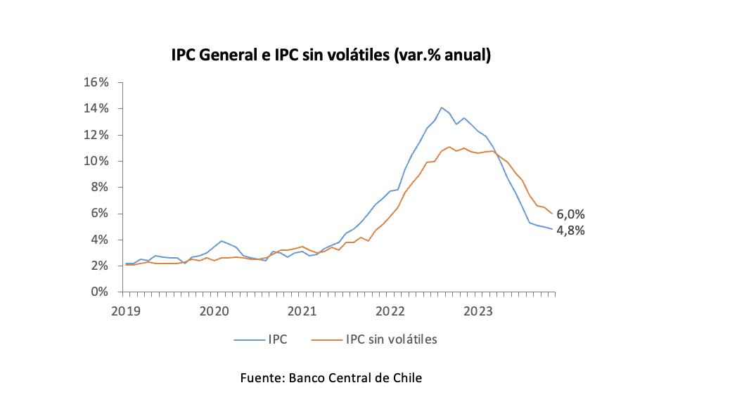 El Instituto Nacional de Estadísticas (INE) dio a conocer el Índice de Precios al Consumidor (IPC) para el mes de noviembre de 2023, el cual registró una variación mensual de 0,7%, muy por sobre lo esperado por el mercado. Sin embargo, parte importante de este resultado se debió al igual que en meses anteriores a componentes volátiles y al efecto rebote en los precios luego de las liquidaciones de octubre.