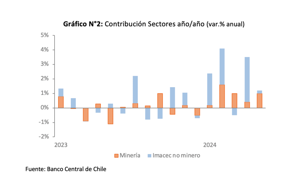 Con todo, si bien el 2024 ha mostrado mejores resultados, el alza ha estado impulsada más bien por factores transitorios, como es el caso de la minería y generación eléctrica, que no evidencia una notoria recuperación de la economía. Esto último resulta notoriamente relevante en el resultado de mayo pasado, que se ubico por debajo de las expectativas.