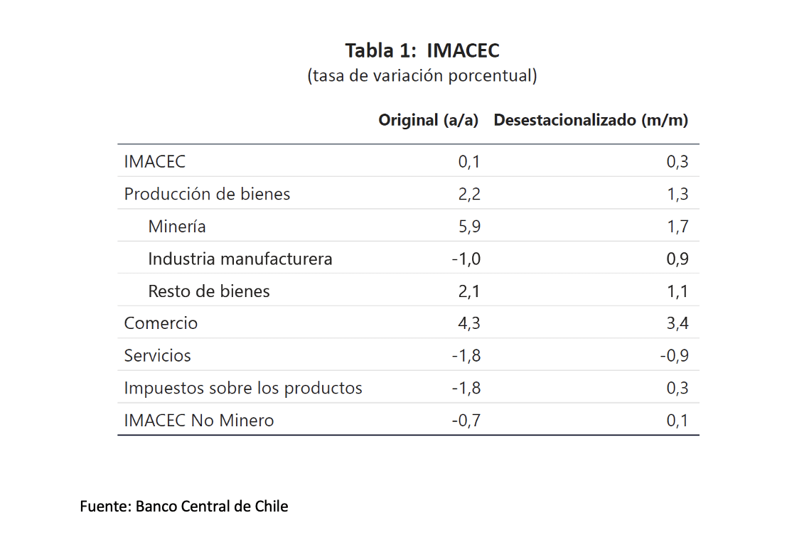 En junio destacó el desempeño de mineria, que subió 5,9% con respecto al mismo mes del año anterior, principalmente por el efecto de Quebrada Blanca y la mayor produccion de litio. A su vez, con respecto al mayo, el crecimiento es relevante (1,7%). Por otra parte, la produccion manufacturera cayò en 1%, en particular en la produccion de alimentos.