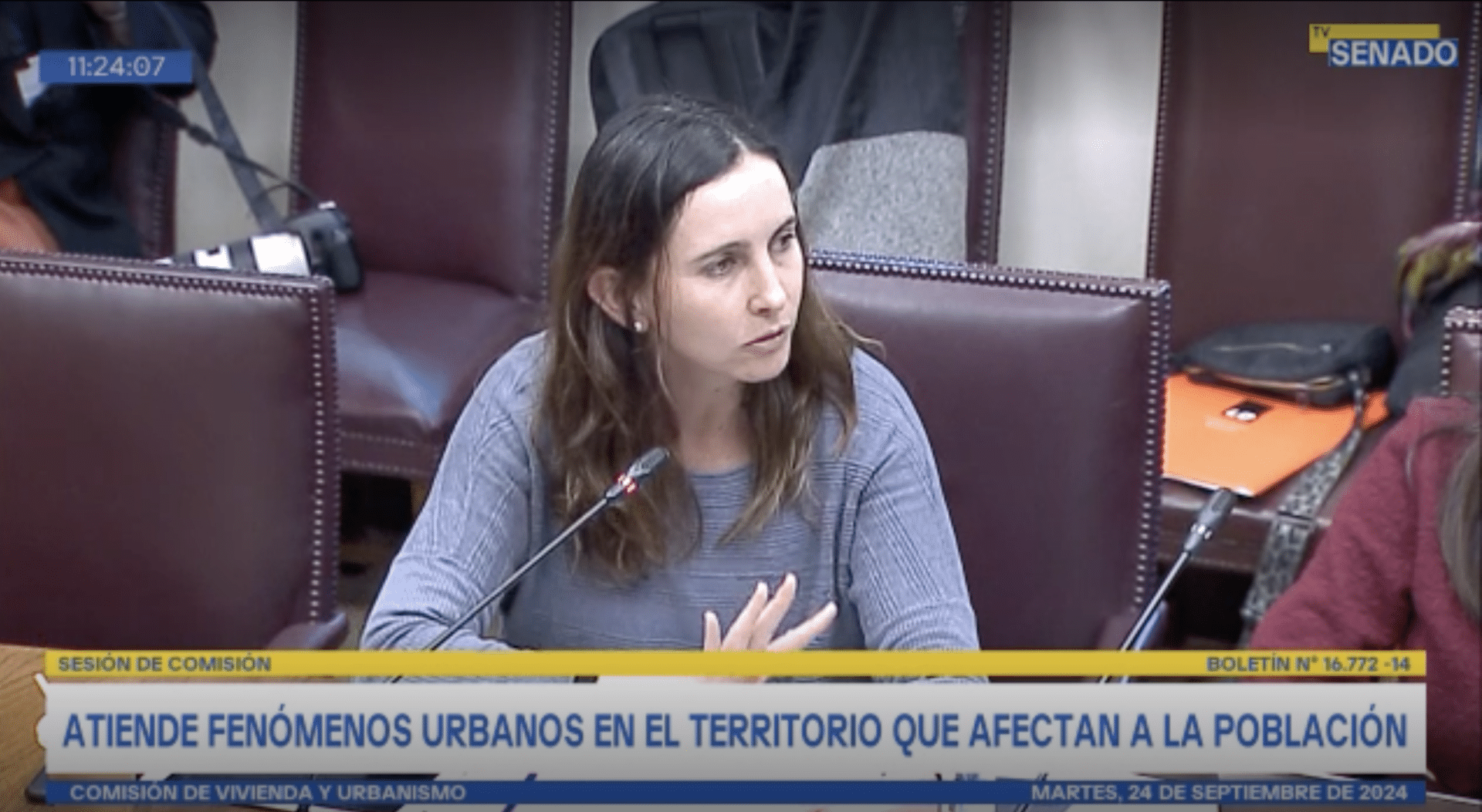 Paulina Henoch, Coordinadora del Programa Pobreza, Vivienda y Ciudad, y Trinidad Schleyer, Abogada del Programa Legislativo, presentaron en la Comisión de Vivienda y Urbanismo del Senado acerca del proyecto de ley que modifica diversos cuerpos legales con el objeto de atender fenómenos urbanos consolidados en el territorio, urgentes, que afectan a la población (Boletín N° 16.772-14).