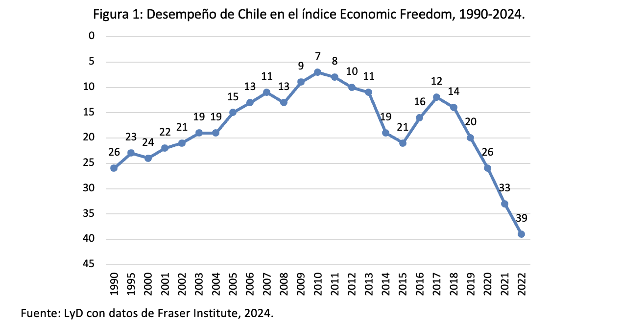 Chile se situó en el lugar Nº39 entre 165 países en el actual reporte, dado a conocer por el Fraser Institute de Canadá en asociación con Libertad y Desarrollo para Chile. Esta posición implica que el país retrocedió seis puestos con respecto al informe de 2023.