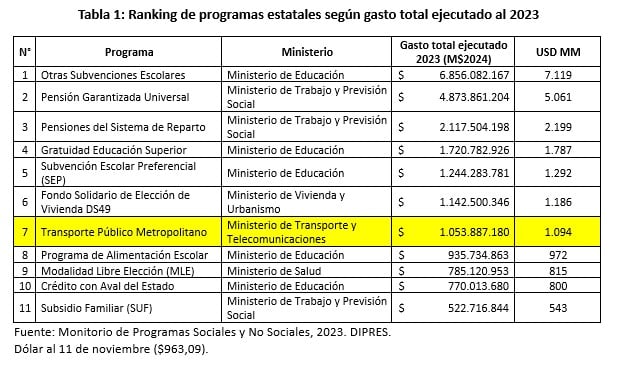 Esto es crítico por dos motivos. El primero, pues el subsidio al sistema RED (es decir, sólo el subsidio destinado a la RM) es el séptimo programa público más caro del Estado, superando al gasto destinado al Programa de Alimentación Escolar de la JUNAEB, a la Modalidad de Libre Elección de FONASA o los recursos destinados al Crédito con Aval del Estado y al Subsidio Familiar (SUF), por ejemplo (Ver Tabla 1).