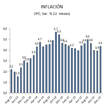 Con este nuevo registro, la variación en doce meses subió respecto a noviembre a un 4,4%, levemente por debajo de la cifra de 4,5% anticipada por el IPoM de diciembre, y aún por sobre el rango meta del Banco Central. Cecilia Cifuentes, Economista Senior de LyD, asegura que esta situación debería mantenerse durante el primer trimestre del año en curso, en parte producto del alza del impuesto de timbres y estampillas que se concreta durante este mes.