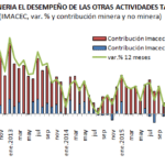 Un elemento a considerar en el análisis es la velocidad del IMACEC (comparación de promedios trimestrales consecutivos desestacionalizados y anualizados), el cual suele aportar antecedentes adicionales acerca del estancamiento de la economía y/o una potencial desaceleración adicional. Esta medida con un 2,3%, puede interpretarse como un elemento más que apunta hacia el estancamiento, o la que parece ser la nueva realidad del dinamismo chileno: crecimiento anual del PIB en torno al 2%.