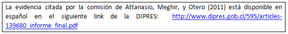 -Impacto en el Mercado Laboral: Del informe de la comisión, “Evidencia indirecta, aplicada a Chile, para examinar el efecto de la reforma de 2008 con la inclusión del pilar solidario, indica que la dirección del efecto señalado[1] pudiera estar presente en la reforma. Attanasio et. Al. (2011) evalúan el impacto de la reforma de 2008 sobre el mercado del trabajo. (…) (Ellos) demostraron que la reforma reduce la cobertura del sistema de pensiones siendo el mayor efecto para la última parte del ciclo de vida (mayores de 40). La fracción de mujeres y hombres trabajando formalmente se reduce en promedio un 4,3% y un 1,7%, respectivamente para el caso de la población económicamente activa".
