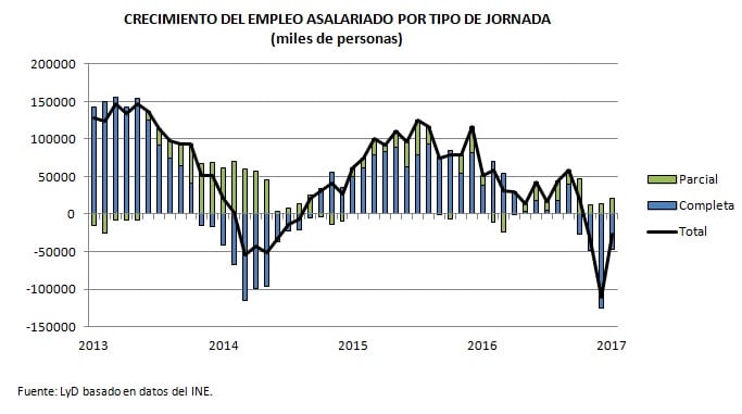 El Instituto Nacional de Estadísticas (INE) dio a conocer la tasa de desempleo correspondiente al trimestre enero-marzo 2017, de un 6,6% a nivel nacional, cifra dos décimas mayor que el trimestre móvil pasado y tres décimas más alto que el mismo periodo de-2016. Si bien el aumento de la tasa de desempleo no pareciera demasiado dramático, la indeseable composición de los empleos que se están creando -por cuenta propia en desmedro de asalariado- no logra revertirse, pero al menos es algo más moderada. Esto siempre en el contexto que el mes pasado se observó la contracción del empleo asalariado a nivel nacional más dramática desde que existe la Nueva Encuesta Nacional de Empleo.