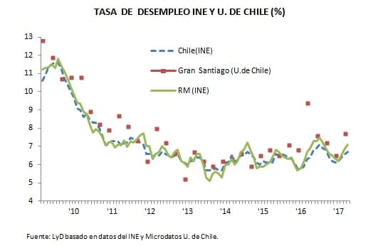 El Instituto Nacional de Estadísticas (INE) dio a conocer la tasa de desempleo correspondiente al trimestre febrero – abril de 2017, de un 6,7% a nivel nacional, cifra una décima mayor que el trimestre móvil pasado y tres décimas más alto que el mismo periodo de 2016. Si bien mes a mes el aumento de la tasa de desempleo no pareciera demasiado dramático, este es un fenómeno que se ha venido perpetuando desde hace ya 3 años, lo que nos ha alejado bastante de los mínimos de 2013, cuando en la Región Metropolitana se registrara un positivo 5,1% de desempleo.