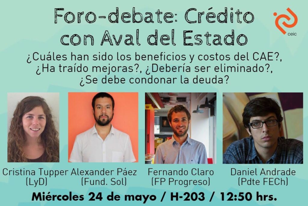 También agregó que otras mejoras al CAE pueden ser relacionadas con establecer formas de combinar este crédito con un sistema de becas que cubra una proporción del costo de estudiar de acuerdo al nivel socio eonómico (NSE) del estudiante. "A mejor NSE más crédito y menos beca", señaló en el foro.