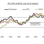 Luego de este nuevo dato, en la primera mitad del 2017 se acumula apenas un 1,1% de aumento de precios y en 12 meses se alcanza un 1,7%, pasándose ahora a estar por debajo del rango de tolerancia del Banco Central de Chile. Esta es la menor cifra de inflación interanual desde fines de 2013. Vale la pena recordar, que a comienzos de 2016 se registraba una inflación interanual de 4,8%, y que recién en agosto se bajó del 4%, y de hecho, en junio del año pasado se alcanzaba un 4,2% interanual, luego de un elevadísimo 0,4% mensual, de ahí que la inflación promedio del año pasado haya sido un relativamente elevado 3,8%. Lo que, como se ha observado en lo que va de este año, aún impacta en algunos precios con reajustes indexados, como lo son la educación, cuyo importante reajuste vimos el mes marzo y la salud, en abril.