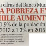 Contrario a lo anterior, las últimas cifras muestran que en Chile habría aumentado. Más específicamente, los datos del Banco Mundial evidencian que, al igual que lo ocurrido entre 2006 y 2009, y utilizando la línea de pobreza de US$ 1,90 dólares al día, entre 2013 y 2015 en nuestro país la pobreza habría aumentado desde 0,9% a 1,3% de la población, es decir, de 158.684 a 234.083 personas.
