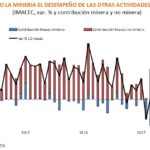 Si desagregamos el IMACEC entre Minero y no minero, se tiene que el primero aumentó 8,5% (9,2% el mes anterior), al tiempo que el IMACEC no minero creció sólo 0,7% (1,8% el mes anterior). Corrigiendo por estacionalidad y días hábiles, el IMACEC minero cayó 0,4% y el IMACEC no minero permaneció constante.