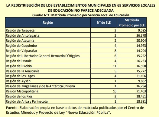 Los servicios locales estarán a cargo de la Dirección Nacional de Educación Pública (DEP), que les asignará los recursos para que funcionen y velará por que lo hagan en red. Esa dirección debe además proponer al Mineduc, cada 8 años, la Estrategia Nacional de Educación Pública, que incluya una política nacional de educación con una mirada de largo plazo. "Se tiene entonces que no solo se produce una centralización en el sentido geográfico, sino que además aumenta de forma importante la injerencia del gobierno central en la administración de los establecimientos", señala Cristina Tupper, investigadora del Programa Social de Libertad y Desarrollo.