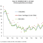 El Instituto Nacional de Estadísticas (INE) dio a conocer la tasa de desocupación nacional correspondiente al trimestre agosto - octubre de 2017, de un 6,7% a nivel nacional (6,7% el trimestre móvil anterior), con lo que se concreta, en términos anuales un alza de 0,3 pp.