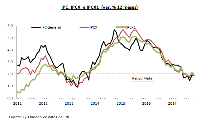 El Instituto Nacional de Estadísticas (INE) dio a conocer el Índice de Precios al Consumidor (IPC) para el mes de noviembre 2017, el cual registró una variación mensual de 0,1%, cifra en línea con las expectativas de mercado.