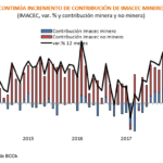 De esta manera, las contribuciones al IMACEC de marzo 2018 fueron de 2,0 por el lado de la minería (1,2 el mes anterior) y de 2,6 por el lado de la actividad no minera (2,8 el mes previo), la cual fue influida principalmente los sectores comercio y servicios.