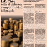 Adicionalmente, el informe se basa en un ránking elaborado por el centro de pensamiento norteamericano Tax Foundation, que en 2017 ubicó a Chile en el puesto 32 de 35 economías evaluadas en materia de competitividad tributaria. Respecto a los impuestos corporativos, el país se ubica en el puesto 22 entre 35 países, explicado por el incremento de 24% a 25,5% del tributo entre 2016 y 2017 y la puesta en marcha de los regímenes de integración parcial y renta atribuida.