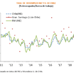El Instituto Nacional de Estadísticas (INE) dio a conocer la tasa de desocupación nacional correspondiente trimestre mayo-julio 2018, que se ubicó en 7,3% a nivel nacional (7,2% el trimestre móvil anterior). Con esto se concreta, en términos anuales, una variación de 0,4 pp. Respecto de este punto, cabe mencionar que el INE publicó en su boletín que este aumento “se encuentra al límite de la significancia estadística que entrega la encuesta”. Además, destaca nuevamente la alta tasa de desocupación en el segmento etario de 15-24 años, de 17,9%.