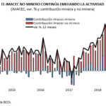 De esta manera, las contribuciones al IMACEC de octubre 2018 fueron de -0,4 por el lado de la minería y de 4,6 por el lado de la actividad no minera, la cual fue influida principalmente los sectores comercio e industria manufacturera.