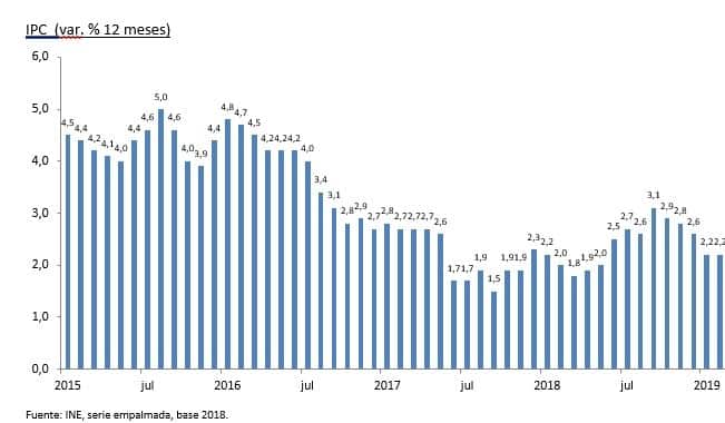 El Instituto Nacional de Estadísticas (INE) dio a conocer el Índice de Precios al Consumidor (IPC) para el mes de febrero 2019, el cual no registró variación mensual, ubicándose bajo las expectativas de mercado. En términos anuales, la inflación total alcanzó una variación de 1,7% respecto de la base referencial del índice. Viendo la serie empalmada (dato a tomar en cuenta para efectos de reajustabilidad), el IPC registró una variación anual de 2,2%. o. En términos anuales, la inflación total alcanzó una variación de 1,7% respecto de la base referencial del índice. Viendo la serie empalmada (dato a tomar en cuenta para efectos de reajustabilidad), el IPC registró una variación anual de 2,2%.
