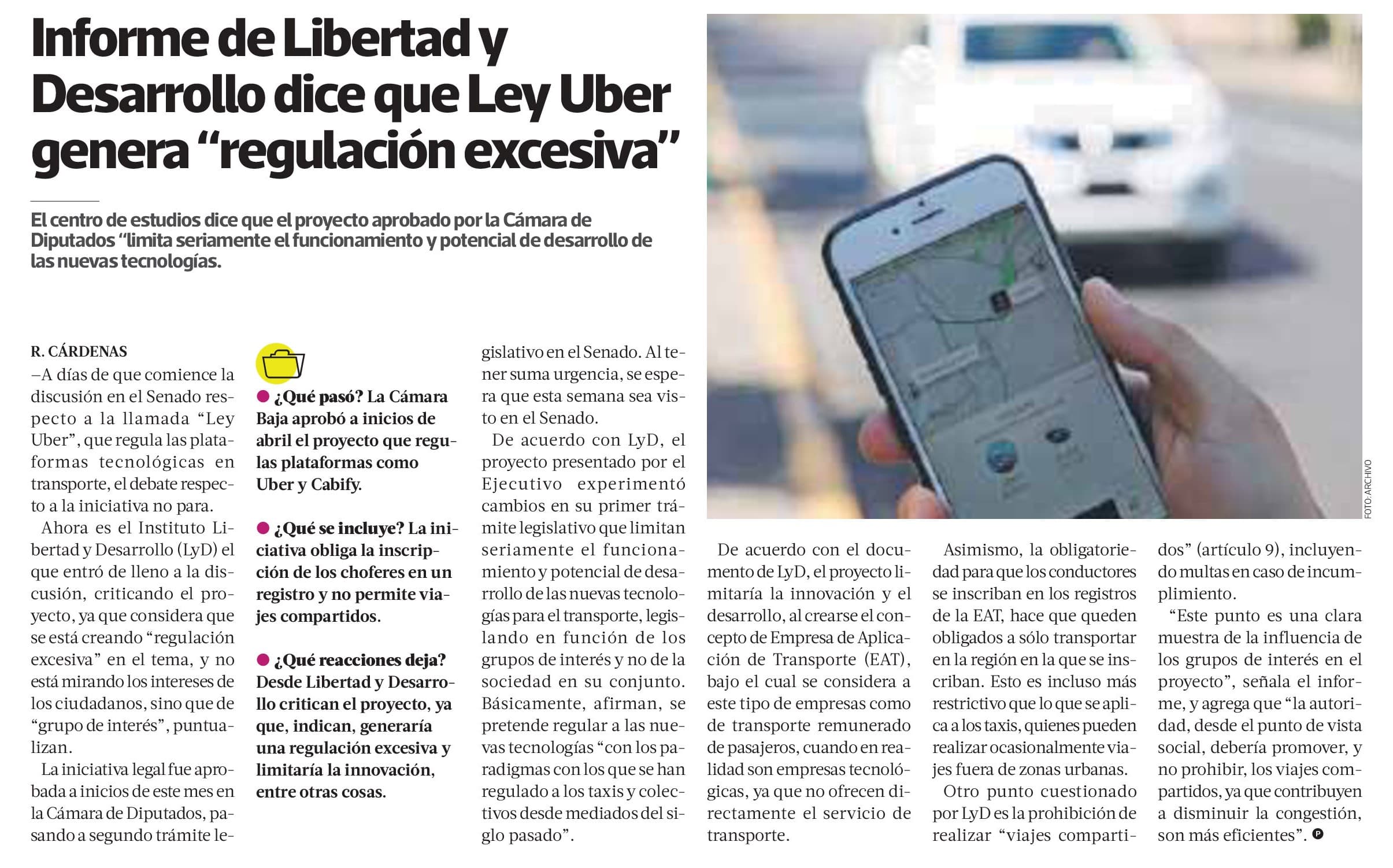 A días de que comience la discusión en el Senado respecto a la llamada 'Ley Uber', que regula las plataformas tecnológicas en transporte, el debate respecto a la iniciativa no para. En unos de los últimos Temas Públicos, criticamos este proyecto debido a que se está creando 'regulación excesiva' en el tema, y no se está mirando los intereses de los ciudadanos, sino que solo de 'grupos de interés'.