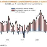 De esta manera, las contribuciones al IMACEC de febrero 2019 fueron de -0,8 por el lado de la minería y de 2,1 por el lado de la actividad no minera.
