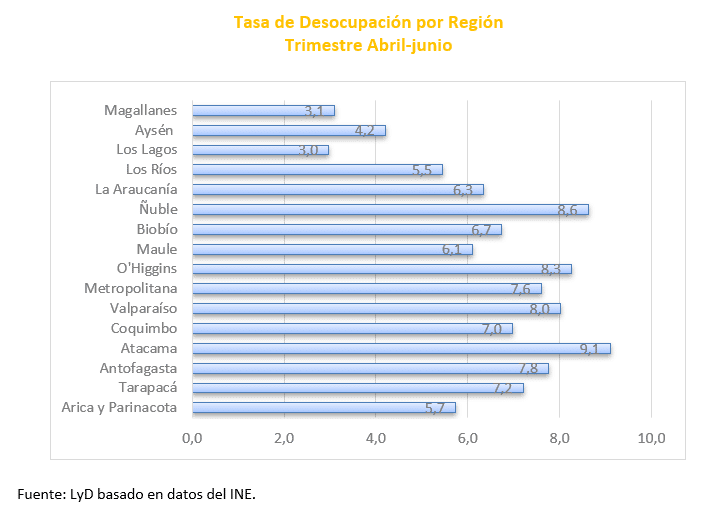 "En contraste, la región con menor desempleo fue la de Los Lagos con 3,0%, destacándose la situación de Puerto Montt con un desempleo de 4,1%, siendo Punta Arenas la comuna con el menor desempleo de Chile con un 3,3%", asegura Tomás Flores, Economista Senior de LyD.